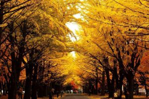 約380mにもわたり、黄金色に輝くイチョウのアーチは宿泊のお客様からも